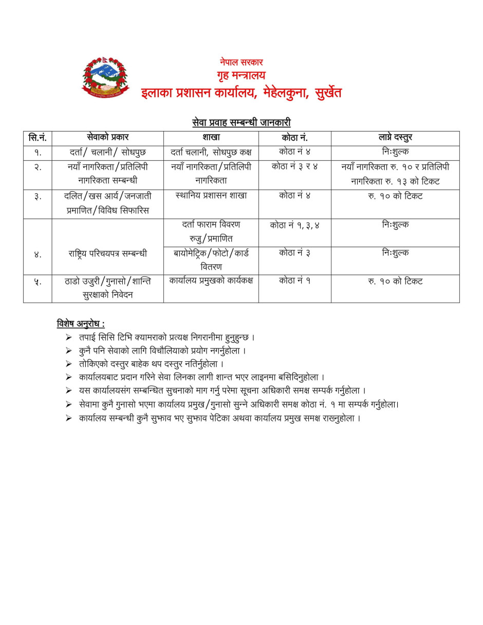 © सर्वाधिकार सुरक्षित इलाका प्रशासन कार्यालय, मेहेलकुना, सुर्खेत